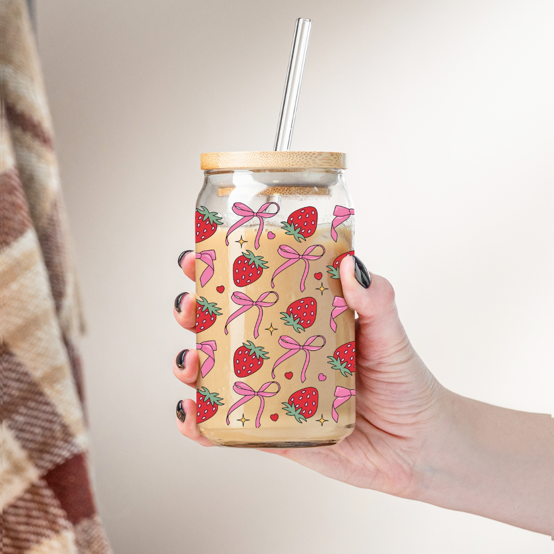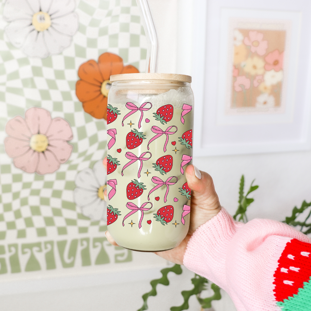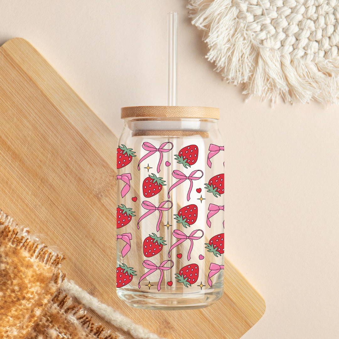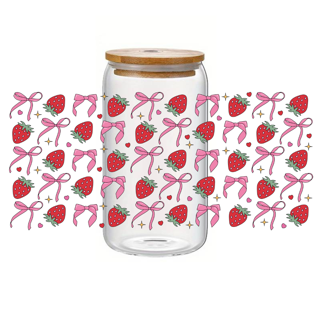 Glass Cup 500 ml - Bows And Strawberries