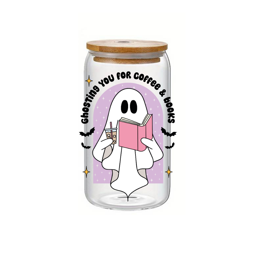 Glass Cup 500 ml - Ghosting you for Coffee & Books